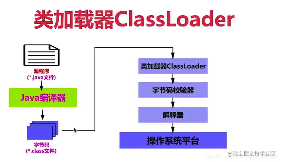 ClassLoader从字节码文件中读取字节码, 并转换为java.lang.Class一个类实例, 并存储在jvm的内存中. 每一个这样的实例, 用来表示一个java类, 之后通过反射创建出此实例的对象.