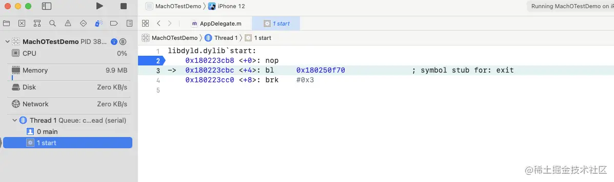 看见这个调用栈信息后,发现似乎是找对了,因为方法前缀都有 dyld 的前缀(这个是 C++ 的命名空间),有了眉目,那就从 __dyld_start 开始吧。