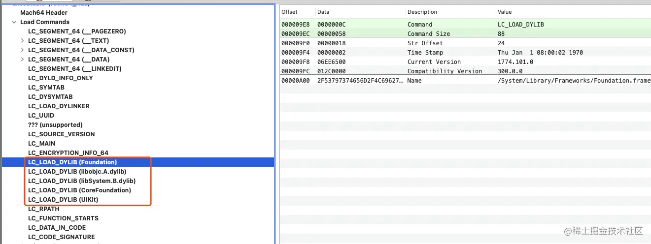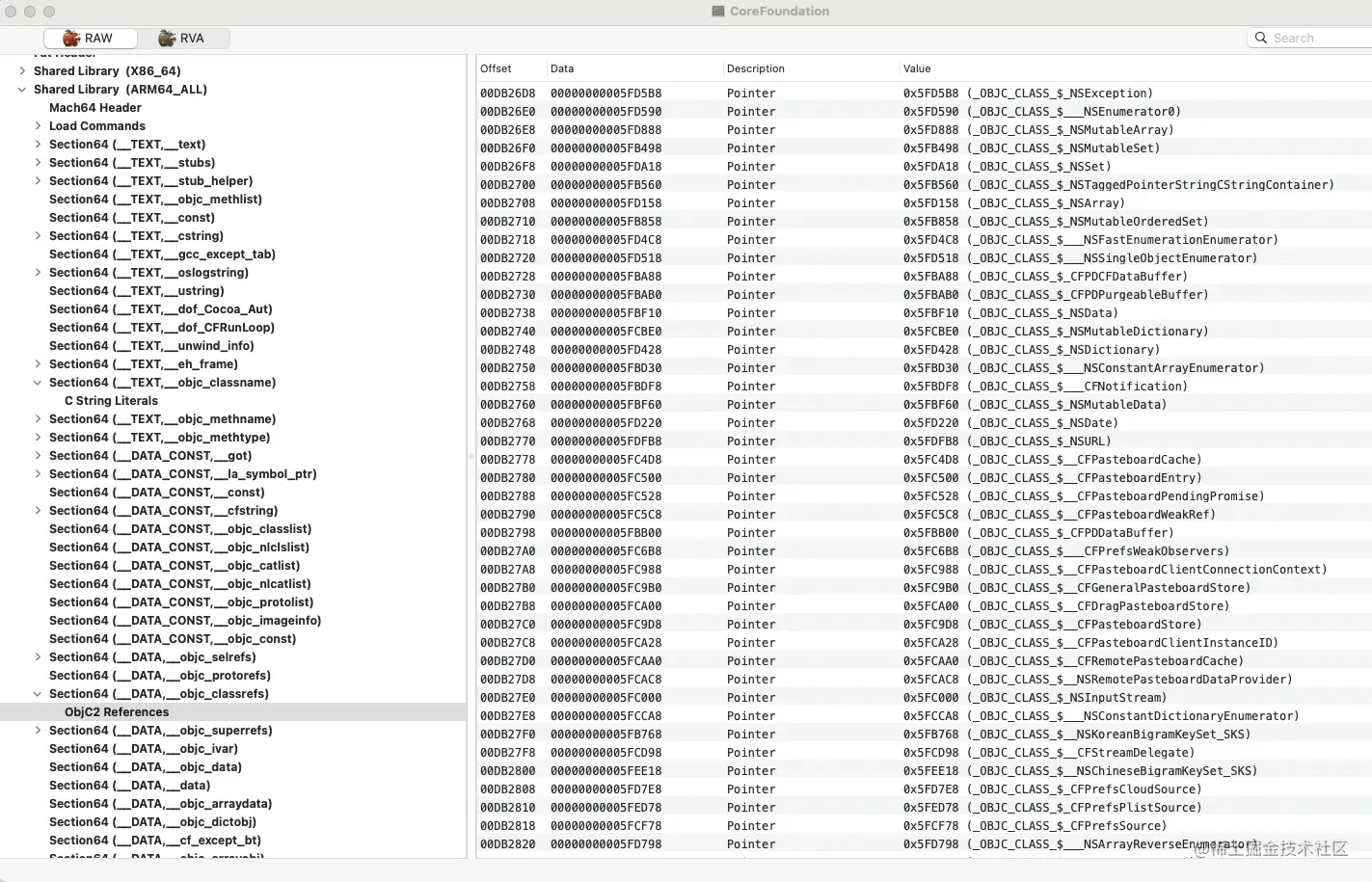 找到一个 CoreFoundation 的 Mach - O ,使用 MachOView 打开如下: