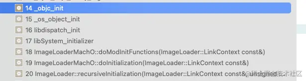 调用了 doModInitFunctions 后,发现到 _objc_init 时,调用栈中还有 libSystem_initializer、libdispatch_init、_os_object_init 没有看到在哪调用的,