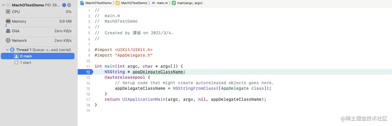 尝试1:把断点打在 main.m 的 main 函数