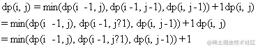 dp[i][j] = min(dp[i - 1][j], dp[i][j - 1], dp[i - 1][j - 1]) + 1 ## 判断左上,左下,右上是否有0