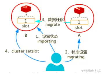 - 向节点B发送状态变更命令,将B的对应slot 状态置为importing