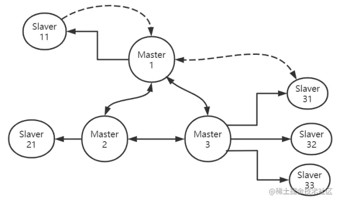 - 将Slaver31的复制源改为Master1