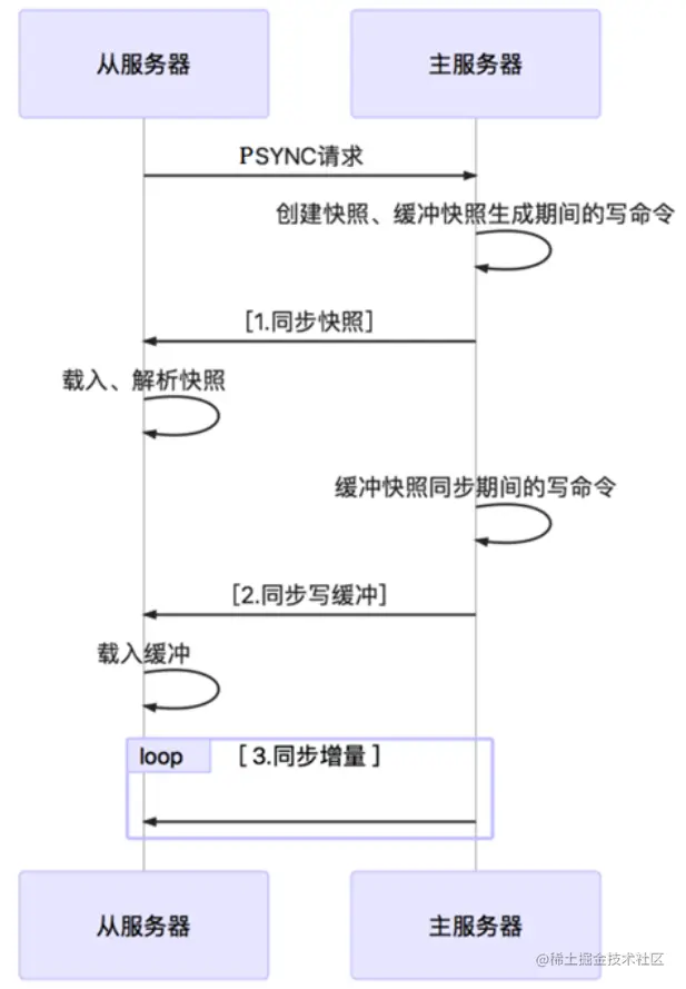 - 同步操作完成后,主服务器执行写命令,该命令发送给从服务器并执行,使主从保存一致