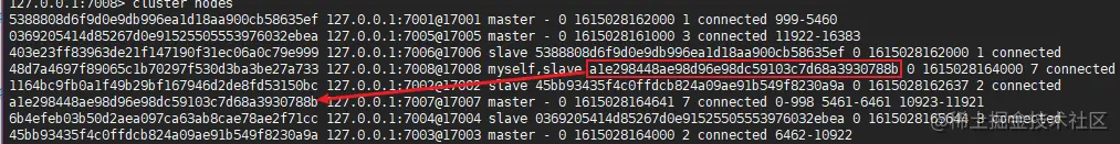 cluster nodes - 添加7008为从节点给7007: