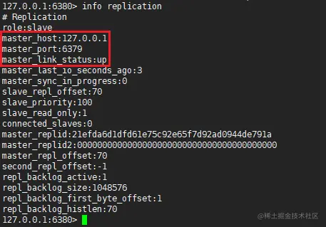 - 使用 info replication 命令查看连接信息