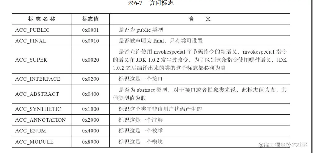 在常量池结束之后, 紧接着的2个字节代表访问标志(access_flags) , 这个标志用于识别一些类或