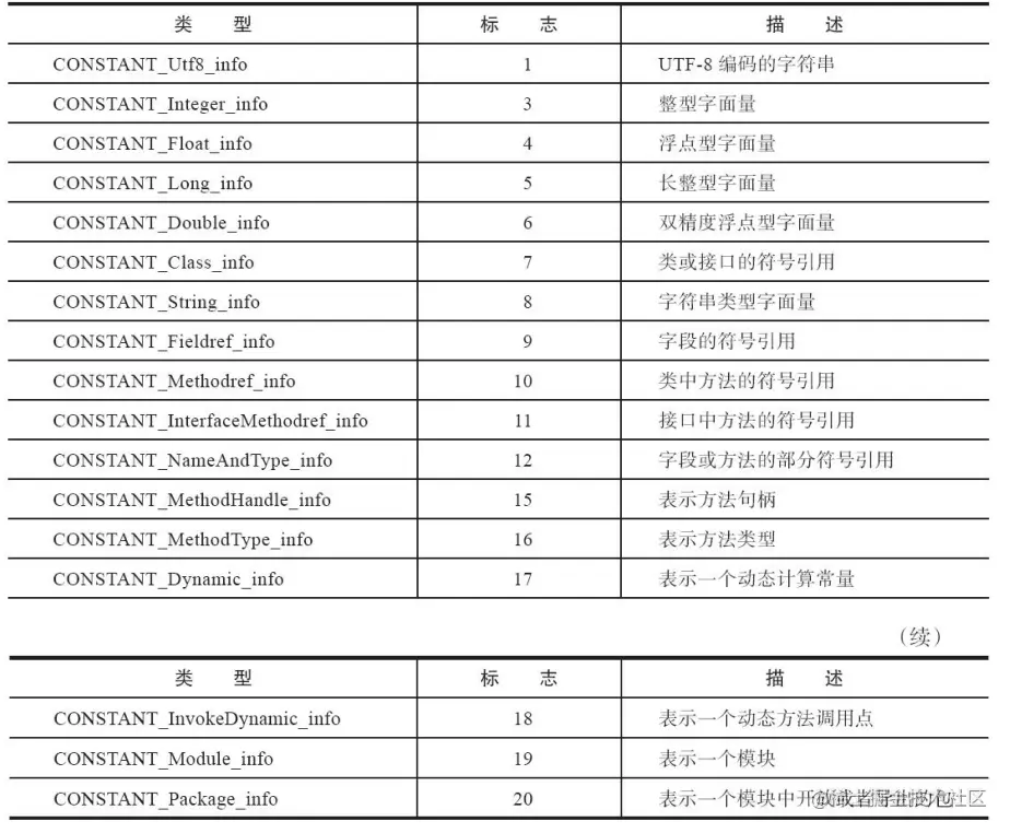 8~9 放容量计数: 如图2-1 0x0016十进制22,索引值0空出来预留,所以可以存储21个常量。 主要存放两类常量: 字面量和符号引用。
