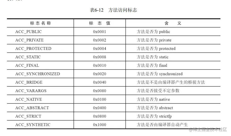ACC_NATIVE、 ACC_STRICTFP和ACC_ABSTRACT标志。