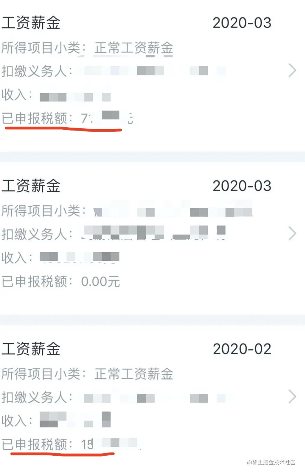 这个要补税的问题算是弄明白了,但是还有一个问题,我发现我在查询里面看到的已经扣的税实际上要比表单里的多。