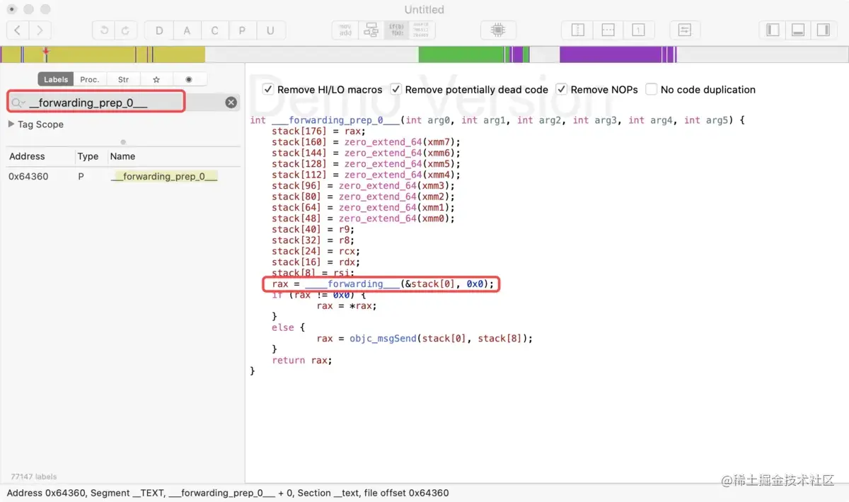 __forwarding_prep_0___的汇编伪代码,跳转至___forwarding___ -