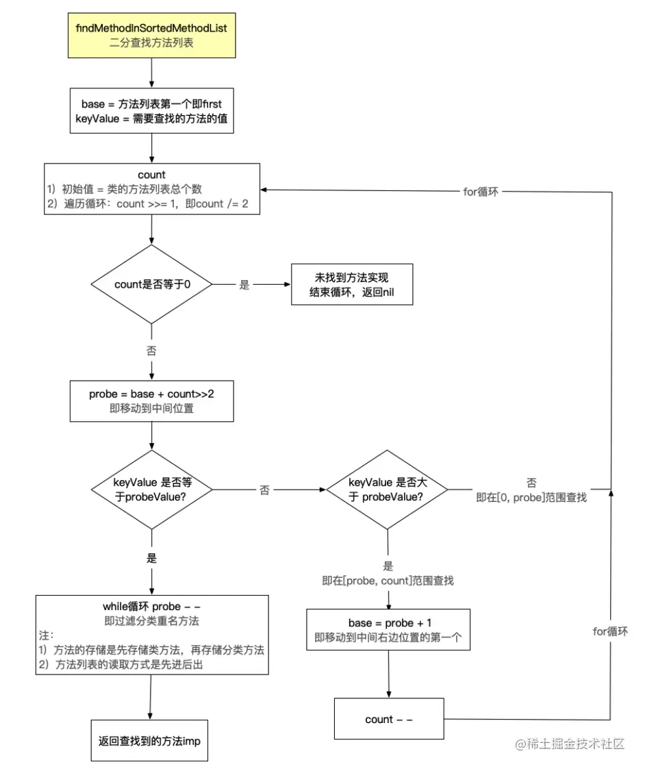 消息查找流程其实是通过上层的方法编号sel发送消息objc_msgSend找到具体实现imp的过程