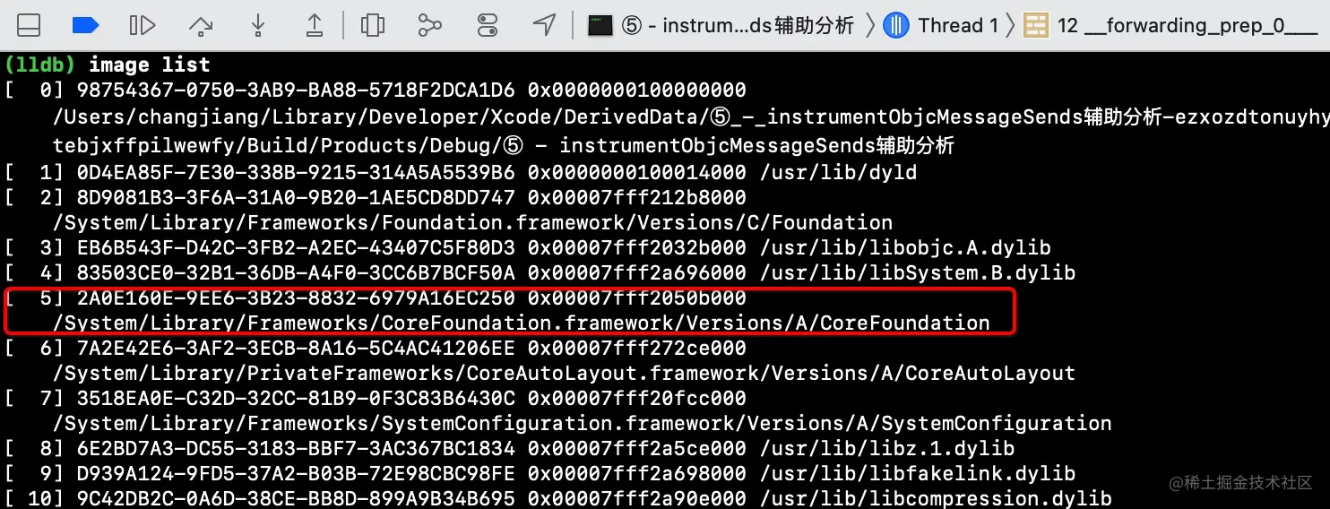 image list,读取整个镜像文件,然后搜索CoreFoundation,查看其可执行文件的路径 -