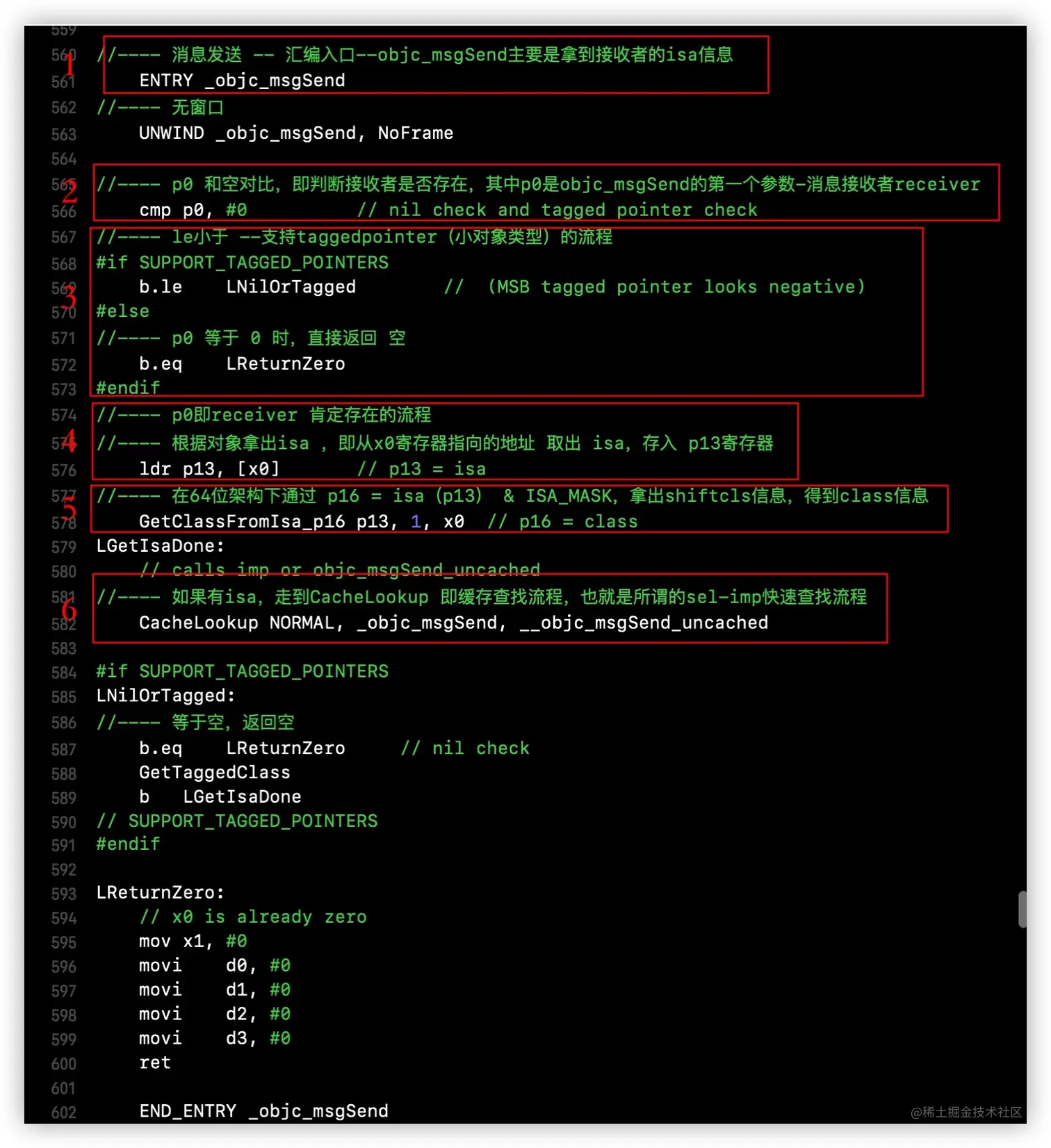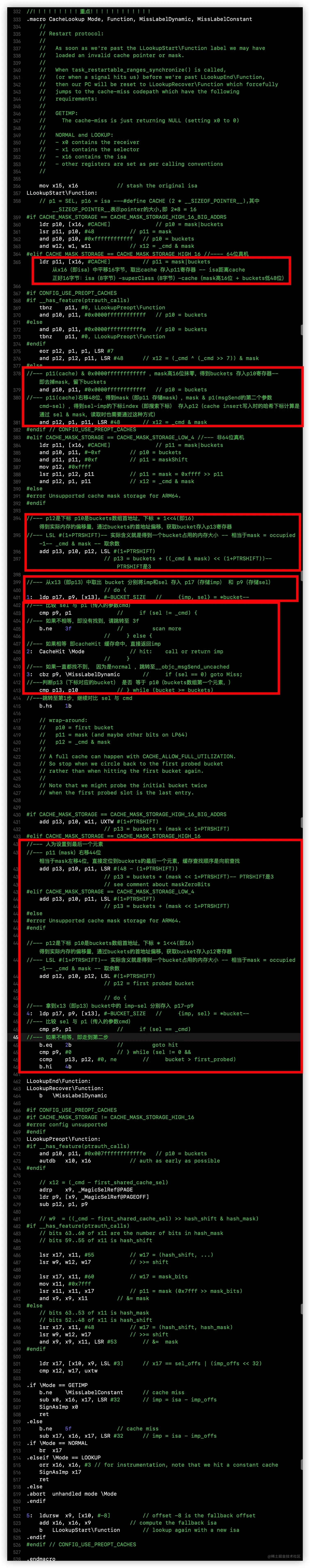 打开objc4源码,由于主要研究arm64结构的汇编实现,来到objc-msg-arm64.s,先附上其汇编整体执行的流程图