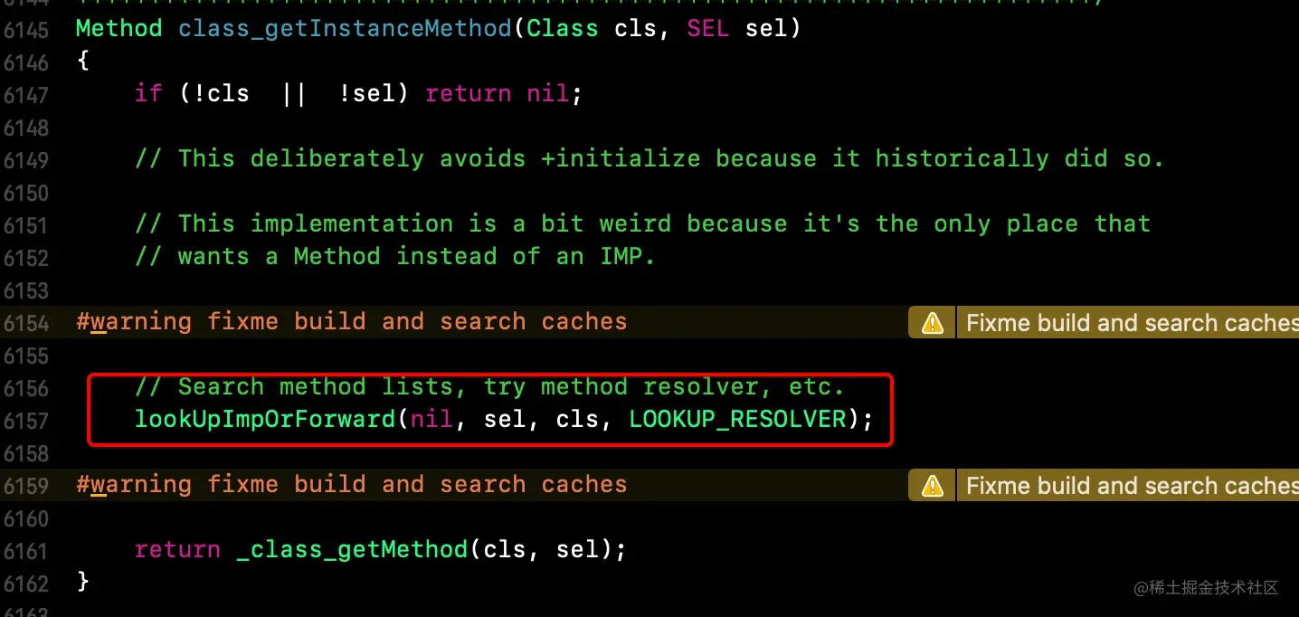 objc4-818.2源码中搜索class_getInstanceMethod,其源码实现如下所示
