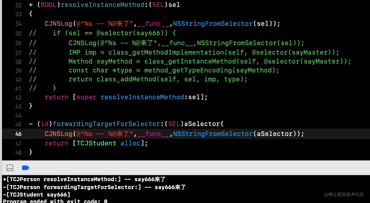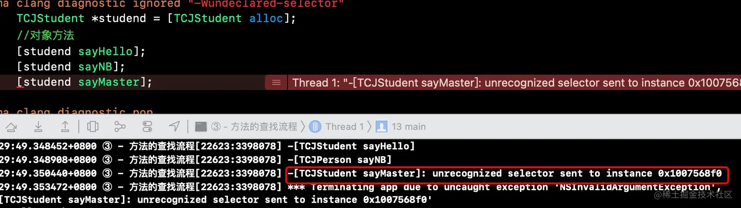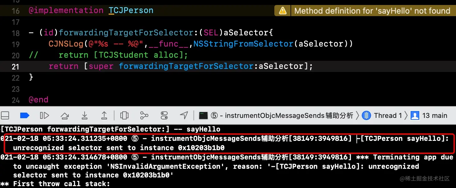 如下代码就是通过快速转发解决崩溃——即TCJPerson实现不了的方法,转发给TCJStudent去实现(转发给已经实现该方法的对象)