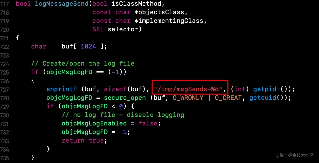 /tmp/msgSends目录,发现有msgSends开头的日志文件,打开发现在崩溃前,执行了以下方法- 两次动态方法决议: