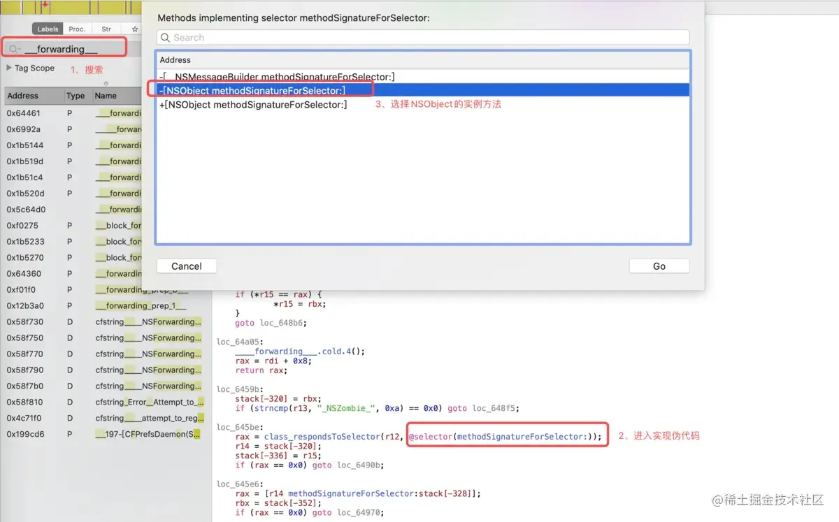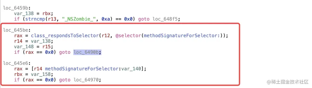 loc_6459b,在其下方判断是否响应methodSignatureForSelector方法 -