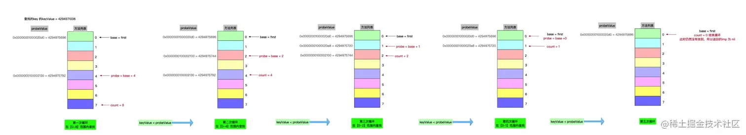 cache中分别取出buckets和mask,并由mask根据哈希算法计算出哈希下标- 通过
