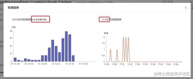 1. 报错发生具体时间,每一种错误,我们需要统计出它发生的具体时间,从下图可以看出,这个错误在每个小时,每一分钟发生的数量都能够清晰可见。可以让我们直接定位到错误发生的时间,省去查找的麻烦。