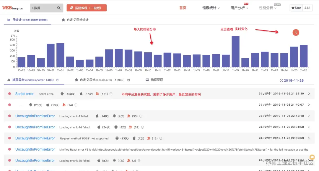前端项目报错统计图