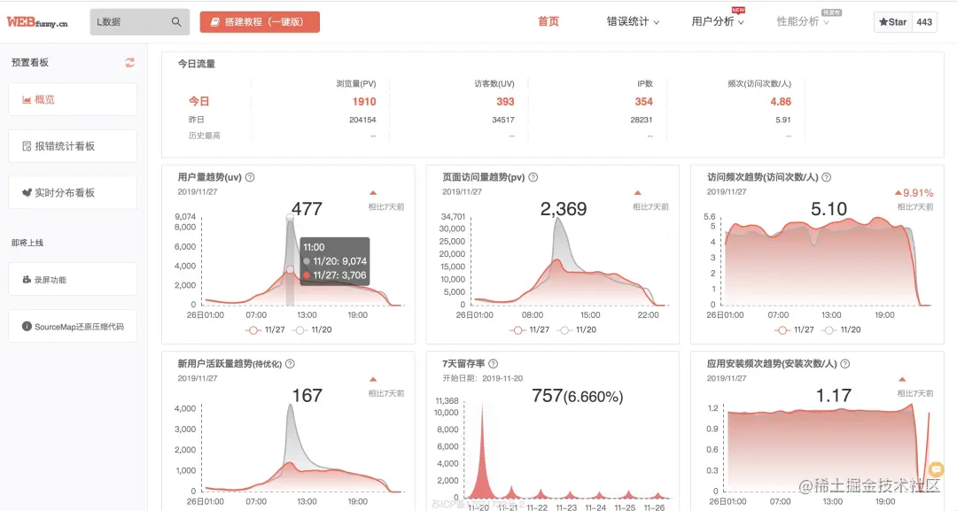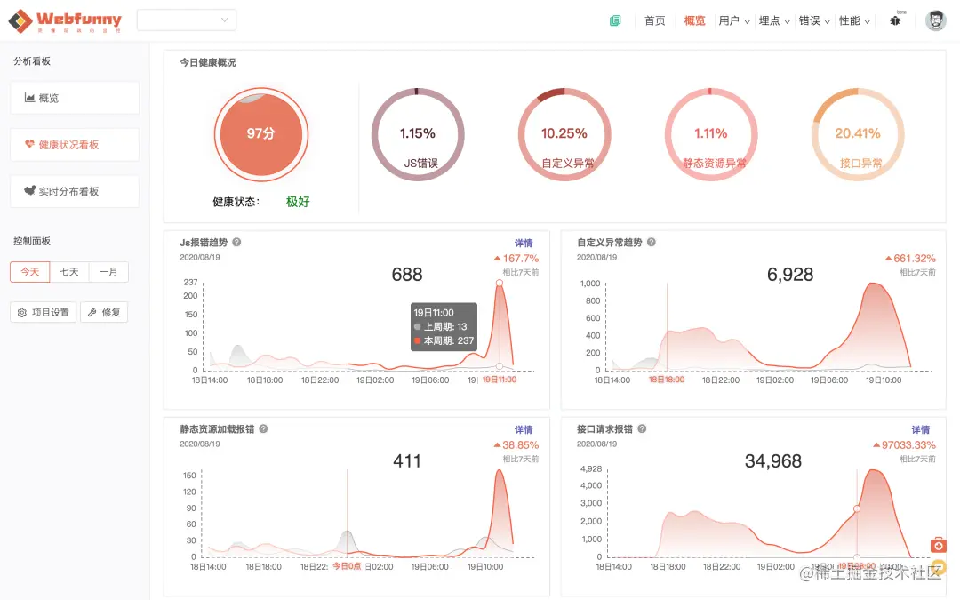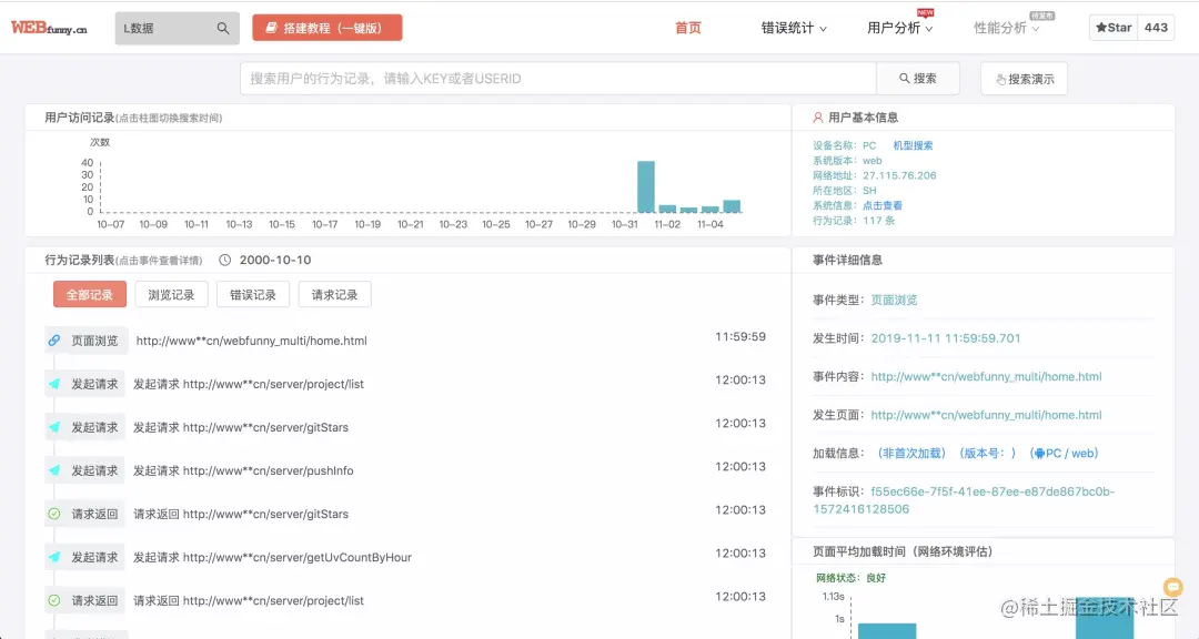 webfunny是个开源项目,先看来一下首页的结果(也可搜索直接访问官方网站 www.webfunny.cn 看效果):