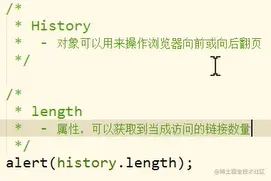 - 代表浏览器的历史记录,可以通过该对象来操作浏览器的历史记录