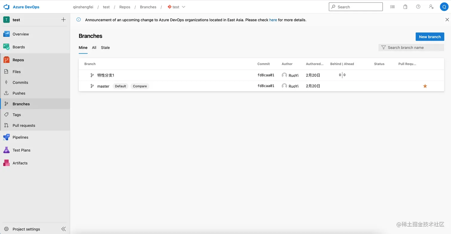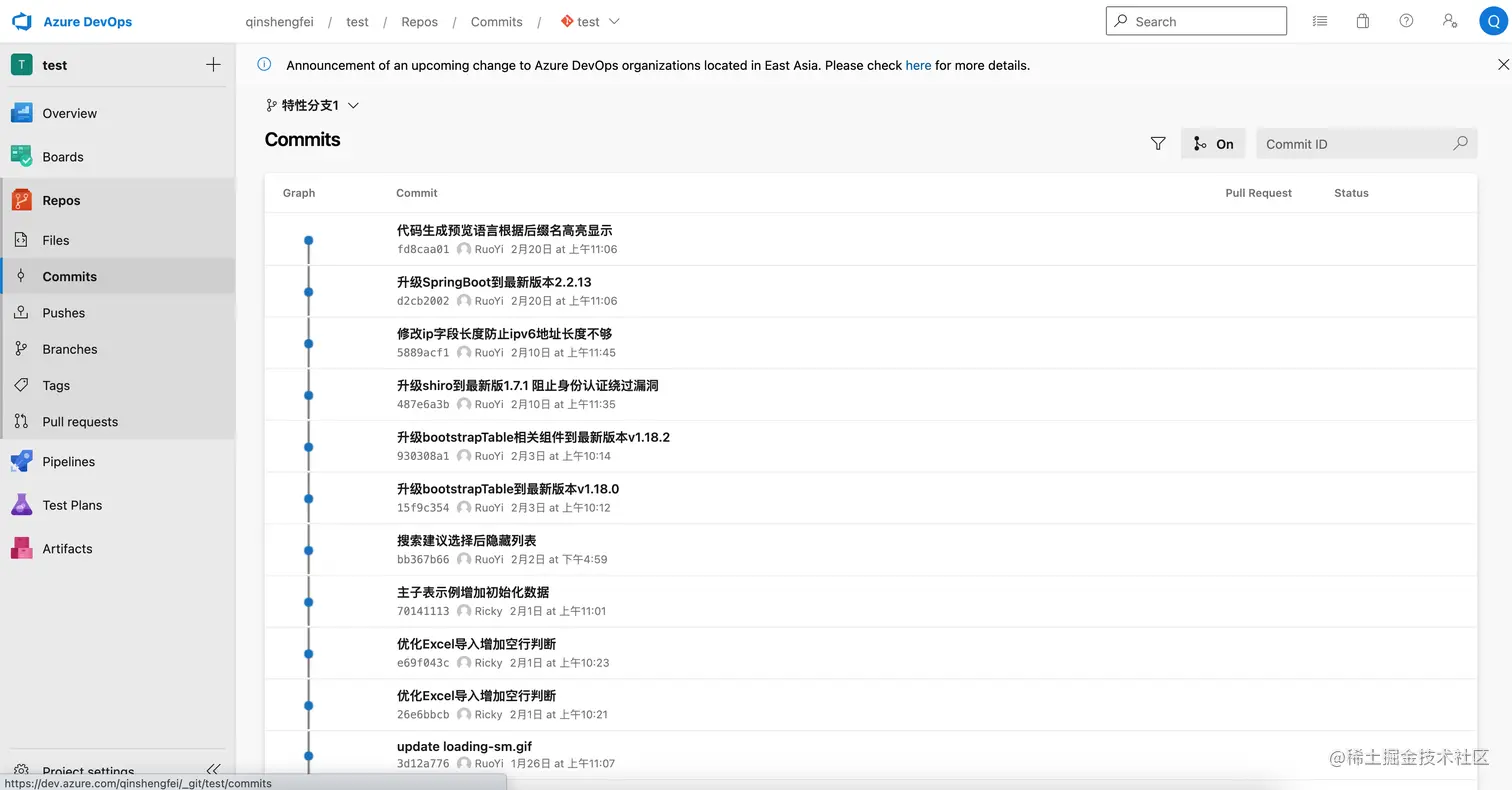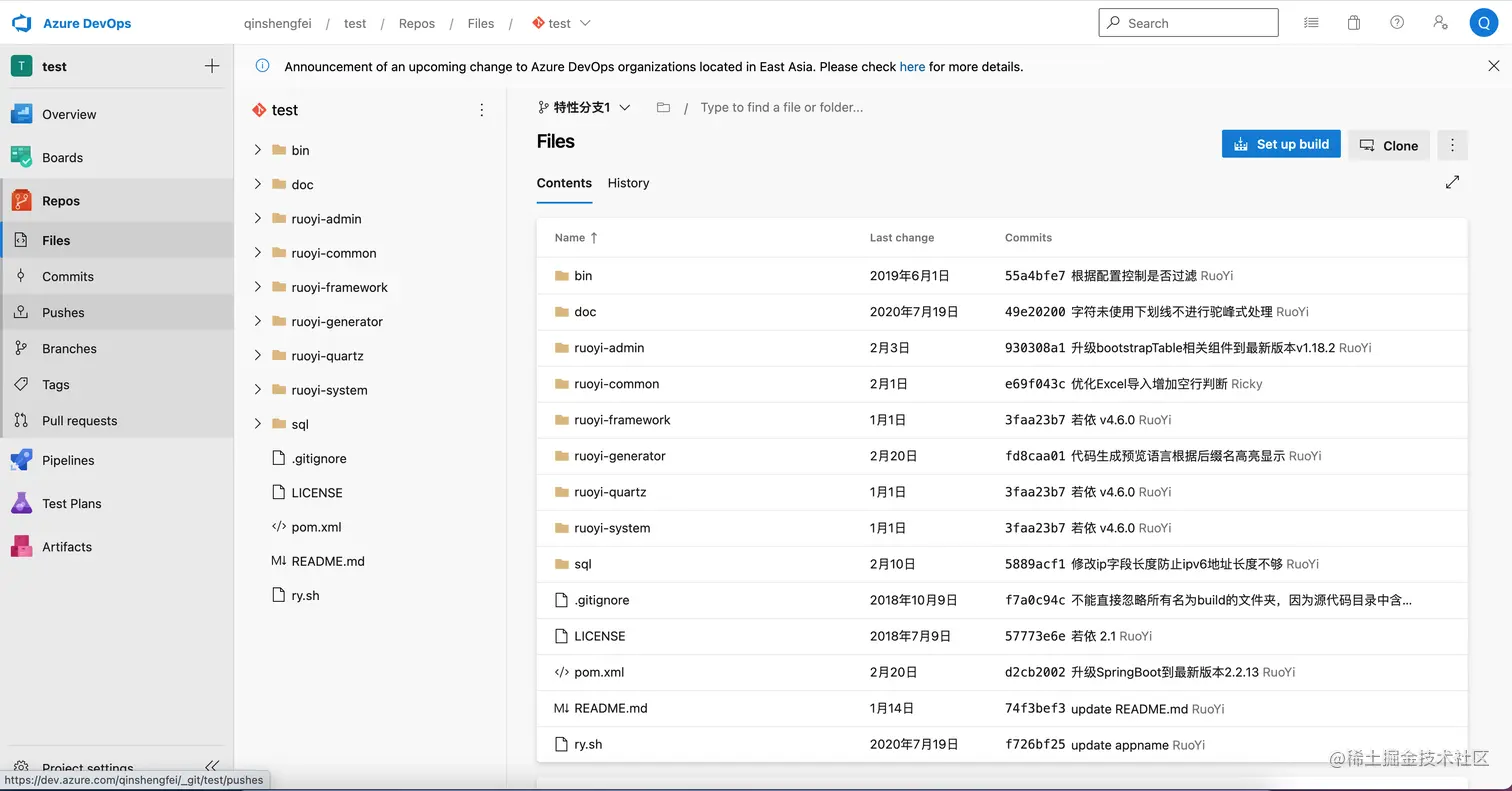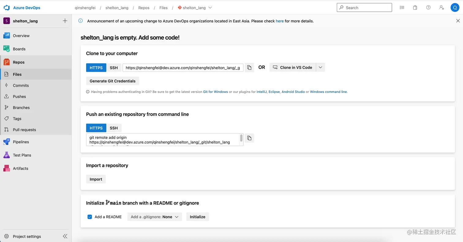 Azure Repos,就是我们常说的代码仓库,相当于gitee,github,git,svn工具。主要是提供给开发人员使用的,管理、查看代码的部件。通过Files、Commits、Branches、Targs、Pull requests组件功能管理、跟踪代码的更新。
