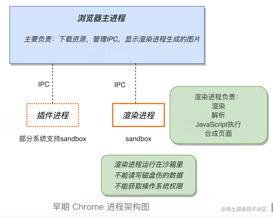 Chrome 的页面是运行在单独的渲染进程中的,同时页面里的插件也是运行在单独的插件进程之中,而进程之间是通过 IPC 机制进行通信