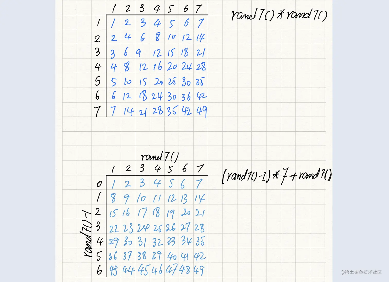 - 如何用rand7生成rand49?