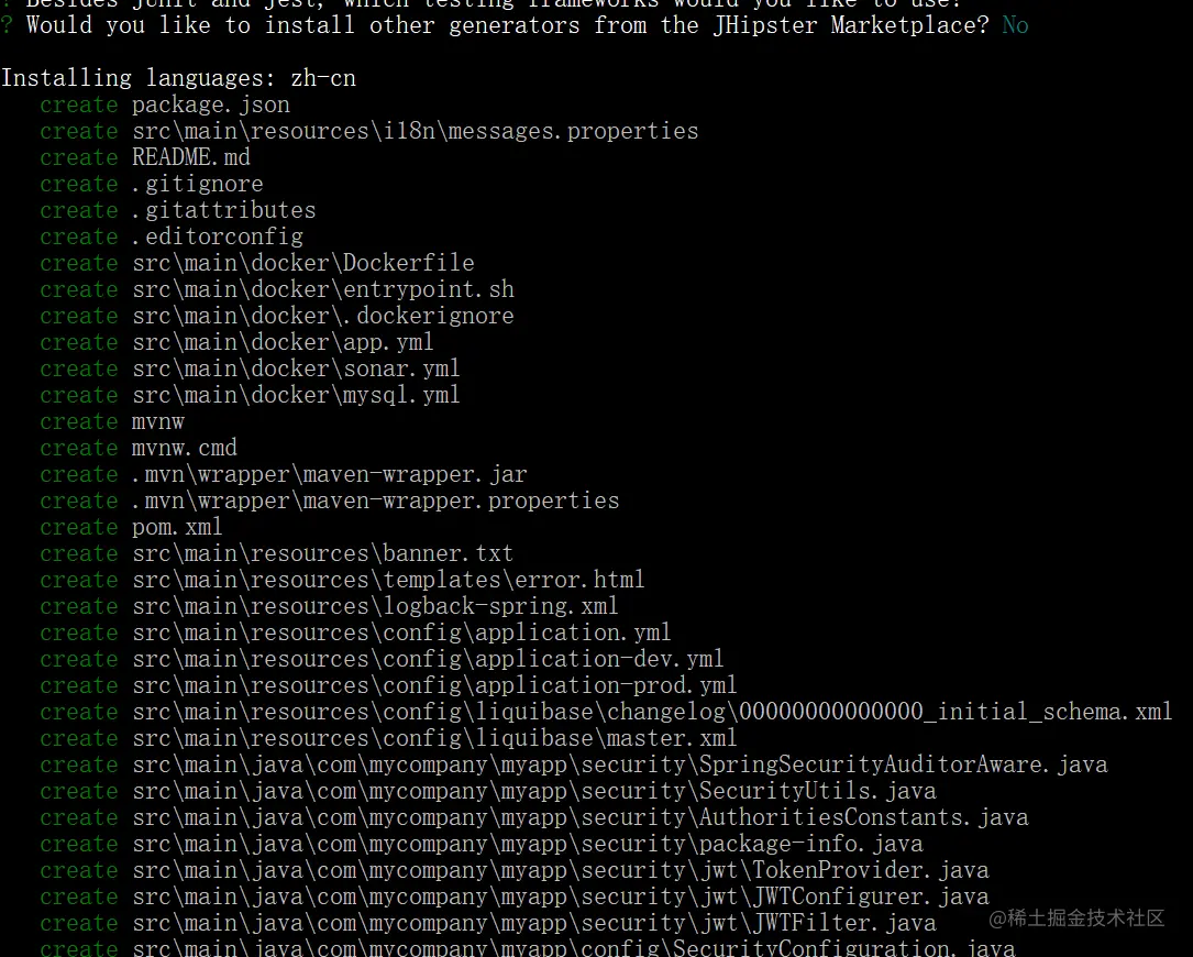 ? Would you like to install other generators from the JHipster Marketplace? **No**
