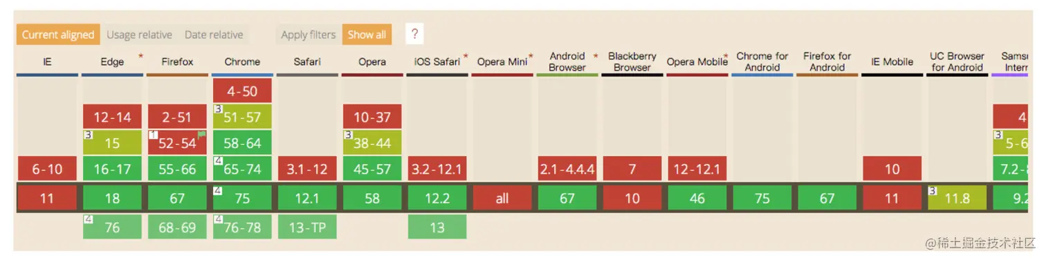来看下目前它的支持情况,iOS12 目前已经支持,IE 全体阵亡。