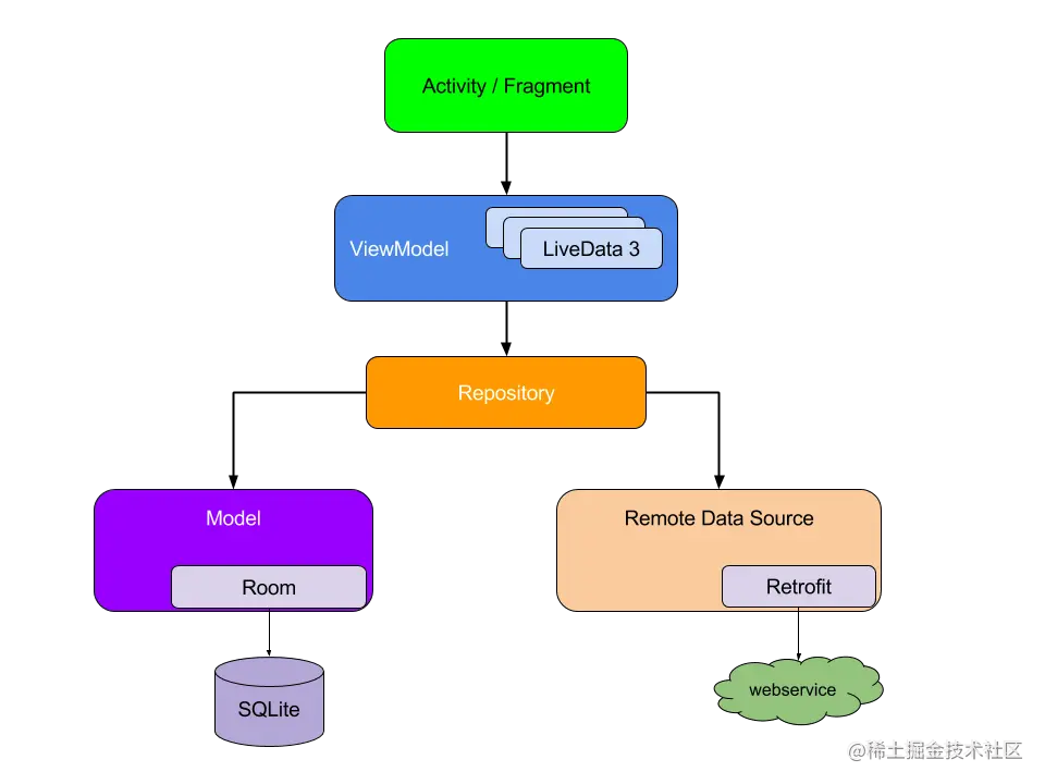 Activity负责UI操作,ViewModel负责数据逻辑。两者通过LiveData进行关联。ViewModel返回LiveData实例和Activity绑定,ViewModel有变化时可以自动更新UI,Activity也可以通过ViewModel发起数据请求- 问题: