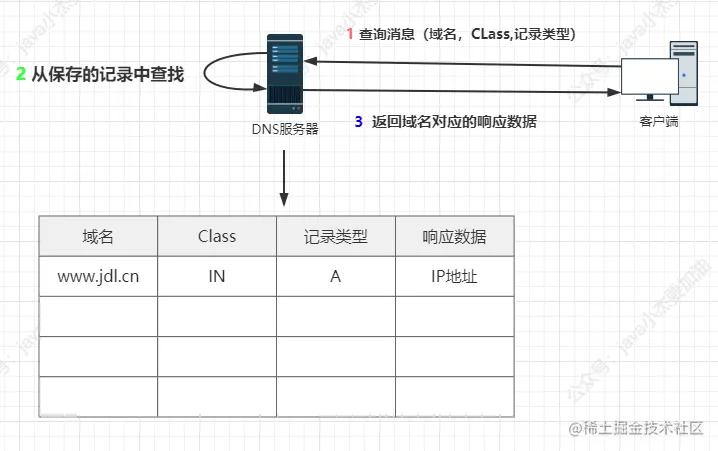 - 操作系统会发送给本地区的DNS服务器,让它帮忙解析下 DNS服务器接受来自客户端的查询,包括以下三个内容