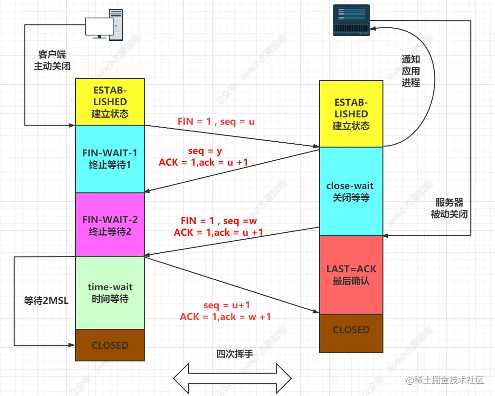 两台计算机最后连接结束后要断开连接,进行四次挥手