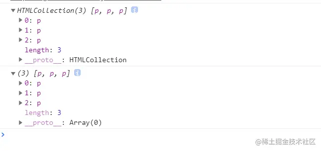 注意:类似数组确非数组,Array.isArray(HTMLCollection) // 返回false,也无法使用splice()方法