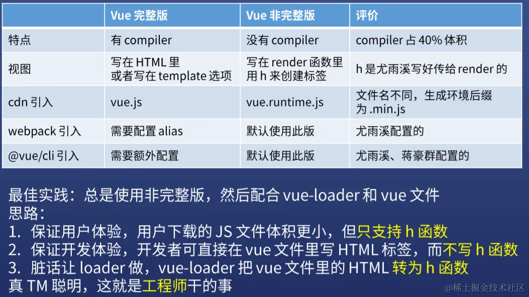 vue.js - 只包含运行时版即是完整版除去编译器的其它一切,文件名是