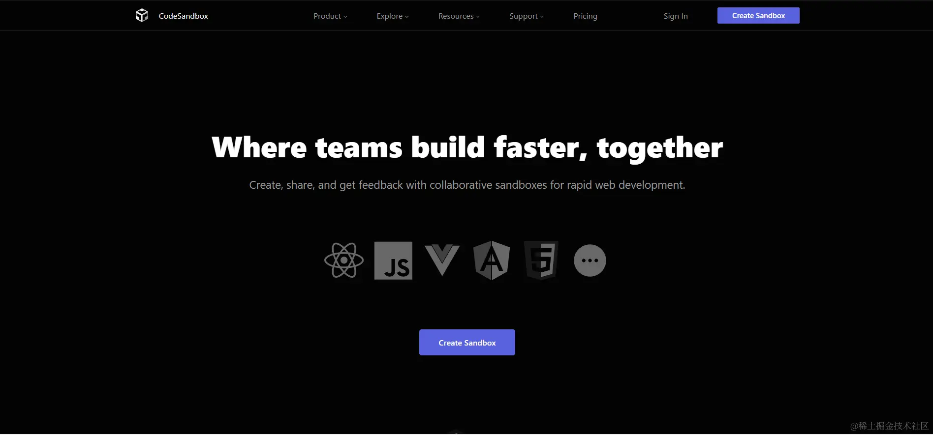 1. 进入首页后,点击create sandbox