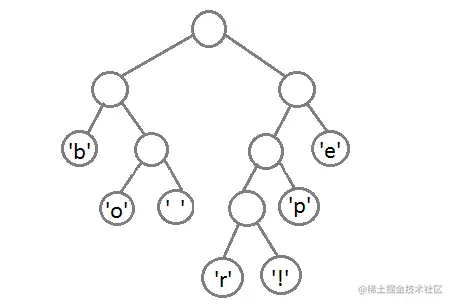 此时,我们把这个树的左支编码为0,右支编码为1,这样我们就可以遍历这棵树得到字符的编码,比如:‘b’的编码是 00,’p’的编码是101, ‘r’的编码是1000。