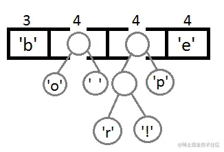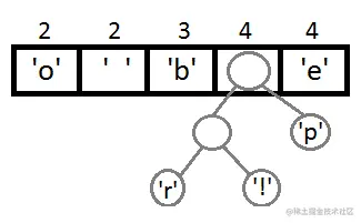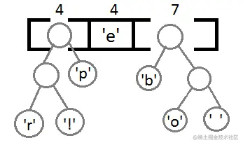 同样,我们再把前两个取出来,形成一个Priority为2+2=4的结点,然后再放回Priority Queue中 :