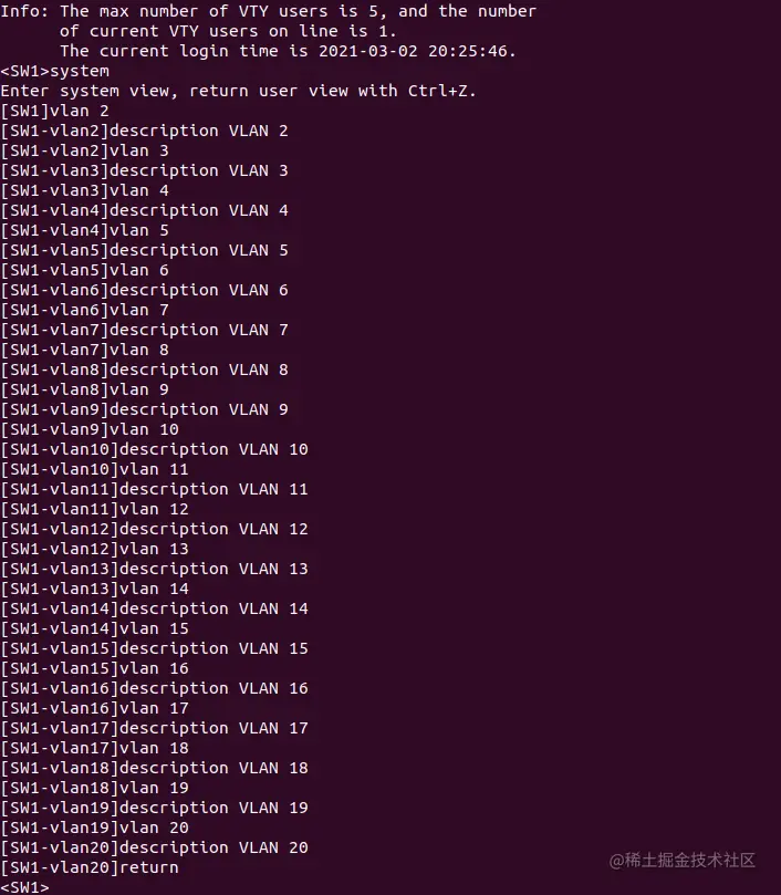 脚本成功远程配置SW1上的vlans。