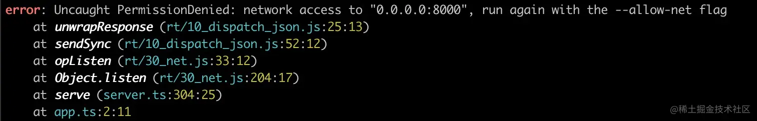 运行deno run app.ts之前,必须要先执行deno run --allow-net app.ts。