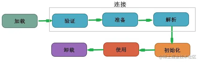 类的生命周期包括:加载、验证、准备、解析、初始化、使用、卸载。加载可以有实现方式,比如本地加载类、或者通过网络加载类,具体实现自由。对于初始化阶段,虚拟机规范规定有且只有5中情况,如果没有初始化,则必须对类进行初始化: