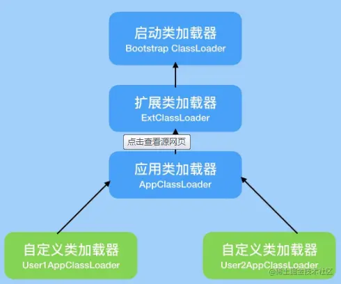 - 应用程序类加载器:负责加载用户类路径上所指定的类库