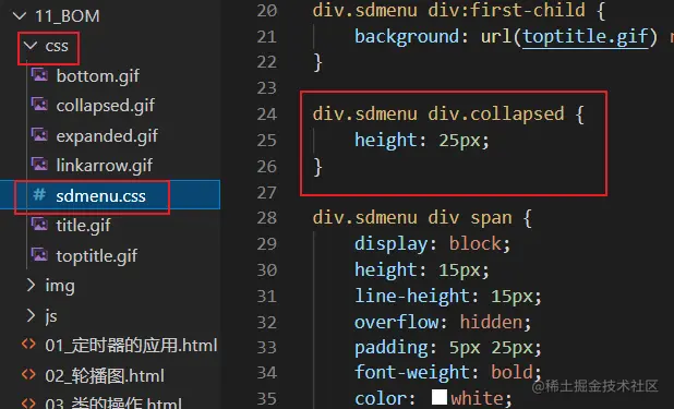 - 当一个div有class="collapsed"属性时,就是叠起来的效果