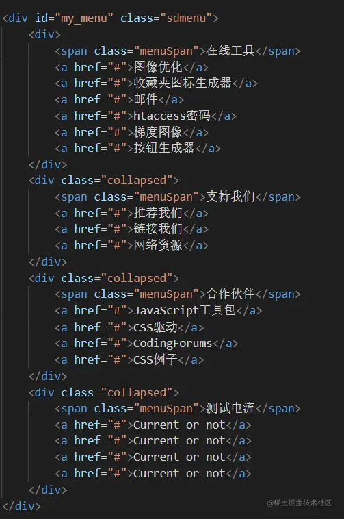 - 括号里有点 .menuSpan 因为调用css文件里的 所以必须有点