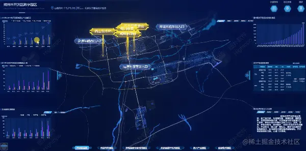 今天将介绍图扑软件 Hightopo自主研发的 HT 引擎协助打造三维可视化的智慧朔州开发区,通过未来科幻的建筑风格多维度展示开发区,以360度全景可视化结合数据场景联动,建立一个控制智慧综合型的智慧城市项目。