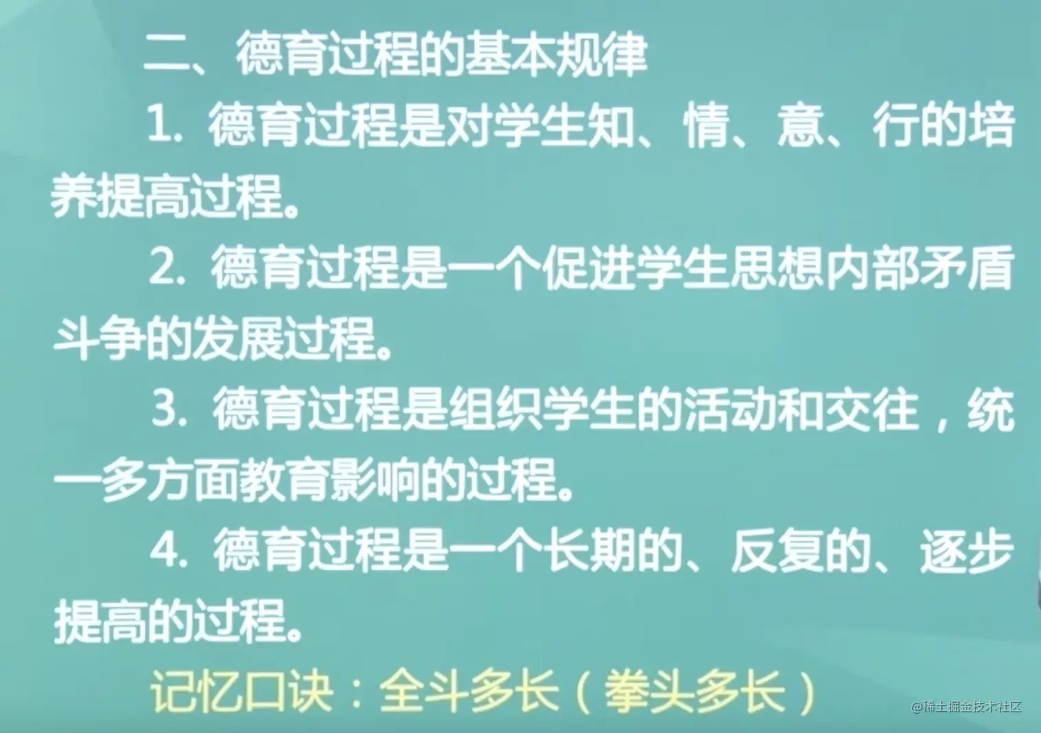 口诀:公世初法 - 现代社会:全民化,多元化,终身化,科技现代化,民主化,教育与生产劳动相结合