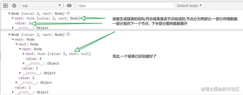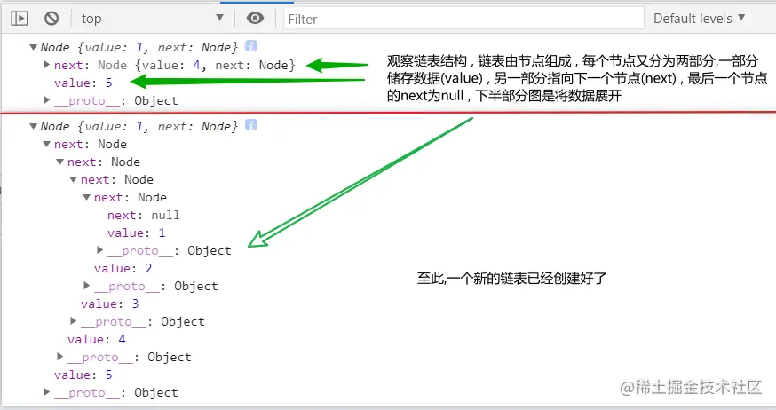 - 创建链表的节点:在js里面可以用构造函数来创建列表的节点